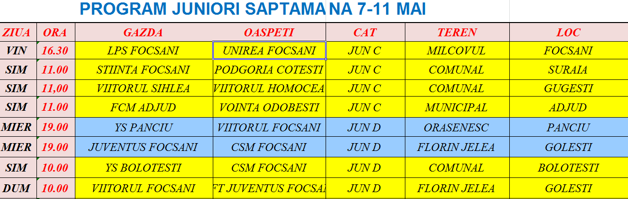 Program juniori 7-10 mai